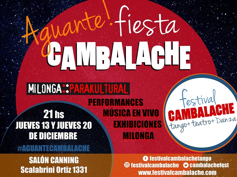 FIESTA AGUANTE CAMBALACHE los jueves 13 y 20 de diciembre, a las 21hs, comenzaran las performances en el Parakultural, Salón Canning (Av. Scalabrini Ortiz 1331, CABA).