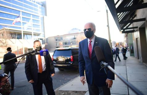 WILMINGTON, DE - NOVEMBER 23:  President-elect Joe Biden speaks to reporters as he arrives at the Queen Theatre to meet virtually with the United States Conference of Mayors on November 23, 2020 in Wilmington, Delaware. As President-elect Biden waits to be approved for official national security briefings, the names of top members of his national security team are being announced to the public. Mark Makela/Getty Images/AFP == FOR NEWSPAPERS, INTERNET, TELCOS & TELEVISION USE ONLY ==