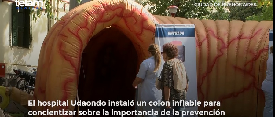 El Hospital de Gastroenterología «Dr. Carlos. B. Udaondo», del barrio porteño de Parque Patricios, instaló hoy un colon inflable gigante que podrá recorrerse por dentro con el objetivo de crear conciencia sobre la importancia de la prevención del cáncer colorrectal, una enfermedad que se «se puede prevenir y se puede curar en un porcentaje muy alto si uno lo toma a tiempo», se informó oficialmente.