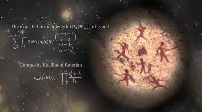 La imagen que encabeza el artículo muestra la fórmula central del nuevo método de inferencia aplicado por los investigadores. A la derecha vemos una pintura de un acantilado, que ilustra cómo ancestros humanos se unen para sobrevivir al peligro desconocido en la oscuridad durante el antiguo y severo cuello de botella. Crédito de la imagen y el núcleo del texto: Shanghai Institute of Nutrition and Health, CAS»)
