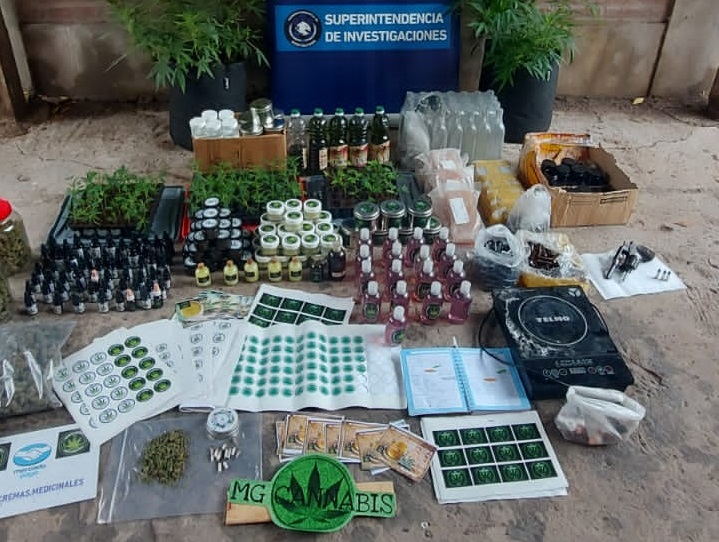 También fueron secuestrados varios elementos vinculados con la producción de sustancias medicinales con marihuana. Entre ellos 39 aceites de 10 mililitros, 28 frascos con ungüento de cannabis, 27 frascos de crema, 16 frascos de shampoo para mascotas, 7 frascos de 30 mililitros de aceite, y 11 cigarrillos de marihuana.
