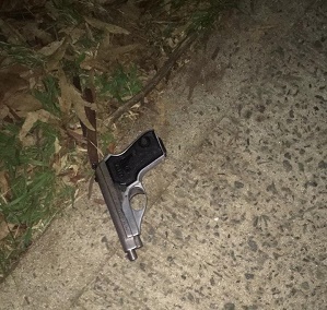 Cuando los oficiales se identificaron como personal policial y ordenaron que detuvieran la marcha, el conductor aceleró para escapar, generándose una persecución de 200 metros, que se terminó casi en el cruce de la avenida Balbín, y durante la cual uno de los delincuentes arrojó un arma, corroborándose luego que se trataba de una pistola Bersa calibre .22.