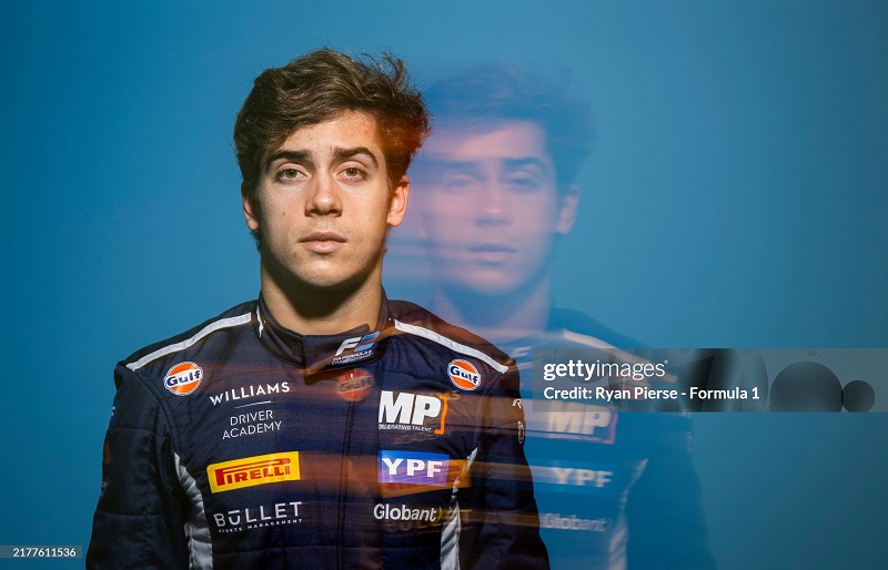 BAHRAIN, BAHRAIN - FEBRUARY 10: Franco Colapinto of Argentina and MP Motorsport (12) poses for a portrait during the Formula 2 Drivers Portrait Session at Bahrain International Circuit on February 10, 2024 in BAHRAIN, BAHRAIN. (Photo by Ryan Pierse - Formula 1/Formula Motorsport Limited via Getty Images)