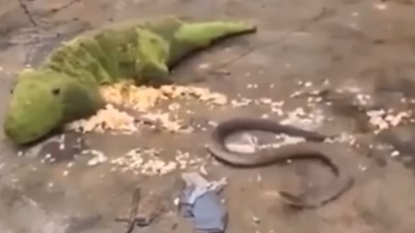 El impresionante video donde un cocodrilo de juguete guarda un nido de serpientes