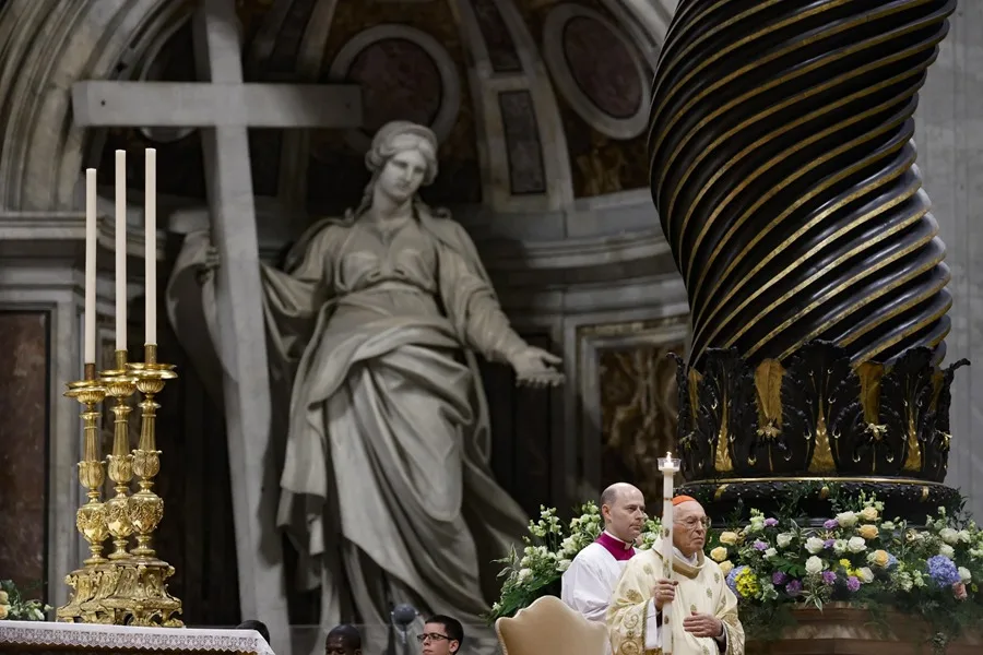 El papa delegó en Re, decano del colegio cardenalicio, para oficiar esta larga celebración de más de dos horas, en la que se conmemora la espera de la resurrección de Jesús y que inicia con la basílica totalmente a oscuras mientras que poco a poco se va iluminado con la luz de las velas de los fieles y concelebrantes.