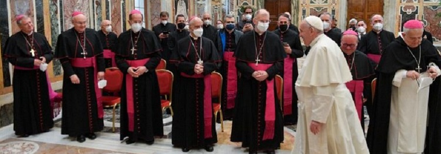 A continuación, el Papa se detiene en la «necesidad de discernimiento en el camino sinodal». Algunos -dijo- pueden pensar que el camino sinodal es escuchar a todos, hacer una investigación y dar resultados. … No. Un camino sinodal sin discernimiento no es un camino sinodal».