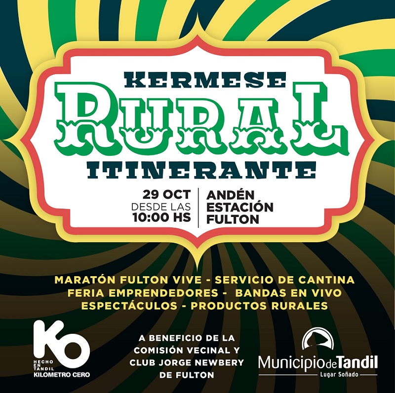 Este domingo Fulton recibirá la primera edición de la Kermese Rural Itinerante, una nueva iniciativa propuesta por la Secretaría de desarrollo Productivo y Relaciones Internacionales del Municipio de Tandil para visibilizar la actividad emprendedora del partido de Tandil y potenciarla en sus entornos de origen.