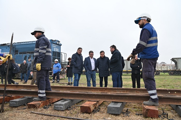 También participaron del acto Daniel Vispo, presidente de Trenes Argentinos Cargas; Jorge Schneebeli, vicepresidente del INTI; Priscila Makari, Subsecretaria de Industria de la Nación; y Franco, Raúl y Giuliano Frola, dueños de la empresa RFG que lleva adelante la fabricación de los durmientes.