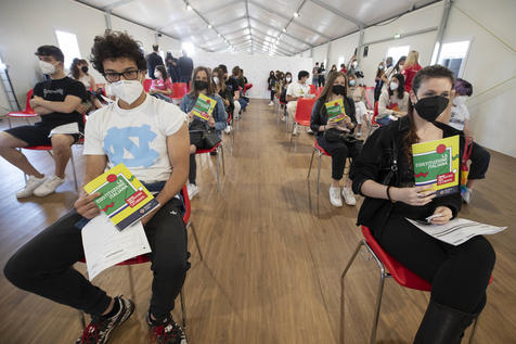 Students receive vaccination against the Covid-19 at the hub of Porta di Roma, Italy, 01 June 2021. The campaign have begun in Rome for the students of the high school that will face the test of maturity. ANSA/MASSIMO PERCOSSI