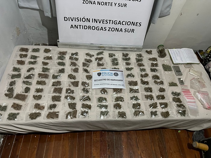 En los procedimientos fueron secuestrados 120 envoltorios tipo Ziploc con marihuana, dosis con cocaína, dinero en efectivo, balanzas de precisión, un teléfono celular y distintos elementos de fraccionamiento.
