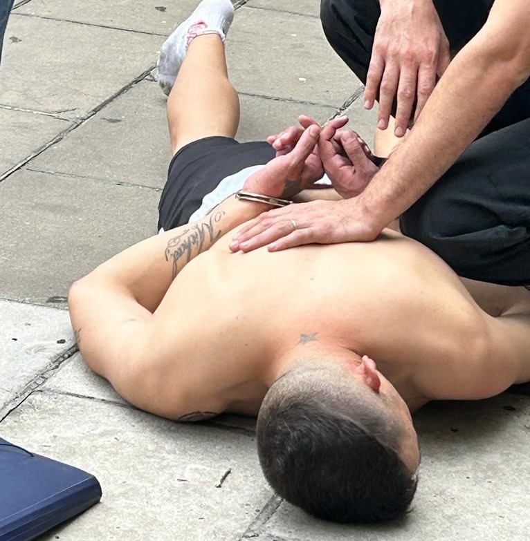 El agresor alcanzó a escapar del lugar y subió por las escalinatas de acceso a la estación, donde arrojó el arma que le había arrebatado a la oficial Zalazar, pero finalmente fue detenido por policías.