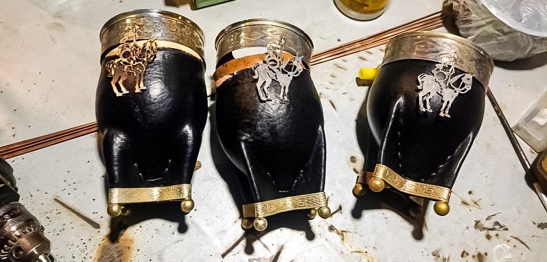 Pero la curiosidad fue más allá y, entre mate y mate, apareció esa historia que es la que siempre da vida a las cosas. “Yo era motoquero y tenía muchos gastos, un día me encontré con un artesano que era de Azul quien andaba recorriendo todo el país en su moto y me pidió la dirección de mi casa porque iba a enseñar artesanía para poder seguir viajando y tener más dinero. Llegó el día en que apareció en casa y bueno, me empezó a enseñar todo lo que sé hoy sobre piedras semipreciosas. Ahí arranqué. En el 2010 organicé una feria en Azul y después, con la moto, viajé a Rauch, recorría los pueblos más cercanos, en moto también hasta que después me compré un Falcon y con mi señora empezamos a y vender por todos lados. Esto es como una familia, hay mucho compañerismo, amistad y es una fuente de trabajo. No lo dejaría nunca, yo adonde voy siempre me está esperando a alguien para tomar mate, quedarme en la casa, comer un asado, para lo que sea. Así que es el compañerismo del artesano, ser colega y, estando en las peores épocas difíciles, ayudarnos uno al otro. La artesanía es algo que uno, cuando lo empieza a hacer, no quiere parar más porque el objetivo es crecer y hacer las piezas cada vez mejor. Se aprende en los talleres y en la calle con los mismos artesanos, que son los que enseñan. Hace ya 6 años entré como Presidente de los artesanos y bueno, ahí fue cuando empezamos a organizar mejor los talleres para enseñar a la gente de Azul, para que el día de mañana sean ellos mismos los artitas populares. La meta es subir escalones, hoy como Feria Mundial del Artesano, estamos en el tercer lugar y la intención es llegar con el tiempo a estar en el primer lugar”.