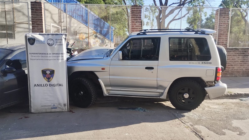 En el cruce de las calles Cutier y Espora, uno de los oficiales observó al Palio chocado y se corroboró que tenía un pedido de secuestro por robo reciente, en tanto que alcanzaron a ver a la Mitsubishi tomando la colectora de la avenida General Paz dando inicio a una persecución hasta la intersección con la calle 2 de Abril, en donde la camioneta fue interceptada.