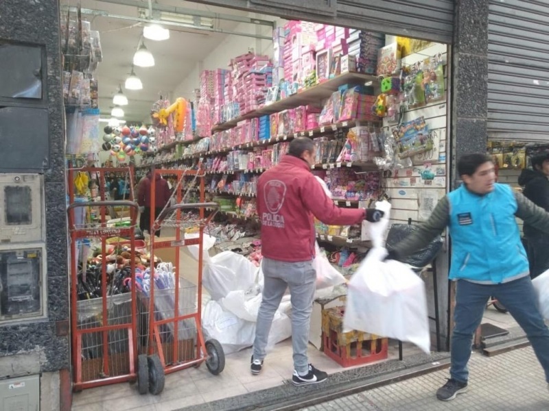 Los procedimientos fueron llevados a cabo por personal de la División Operaciones Especiales de la Policía de la Ciudad, en cooperación con agentes de la Agencia Gubernamental de Control (A.G.C.), la Cámara Argentina de la Industria del Juguete (C.A.I.J.) y Lealtad Comercial, en diez locales ubicados en la calle Perón, en un radio de dos cuadras entre las alturas 2500 y 2700.