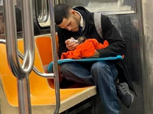 Esta imagen proviene de los Estados Unidos y dio la vuelta al mundo. Quien la publicó fue Gillian Rogers (fundadora de Pet Rescue Squad Inc, una organización sin fines de lucro que se ocupa de animales abandonados). “Volvía a casa cuando lo noté – escribió – que el hombre que iba conmigo en el vagón no estaba solo y que llevaba un gatito envuelto en una manta. Lo estaba alimentando con un biberón y se notaba la preocupación que tenía. Era como si mi corazón si fuera a explotar al ver a alguien con tanto cariño por un ser vivo «. Rogers decidió preguntarle al hombre qué le pasó al gatito y descubrió que se encontraba solo y hambriento entre dos edificios, por lo que decidió llevarlo a casa. «Me sentí tan feliz – concluye Rogers – como si hubiera renovado mi fe en la humanidad. Todavía hay gente buena por ahí«.