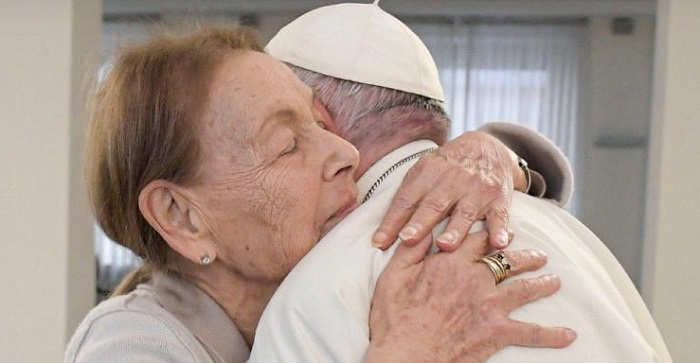 La ternura fue evidente en el abrazo con el que Francisco la saludó en la Casa Santa Marta, en este día simbólico en el que se conmemora a las víctimas de la Shoá.