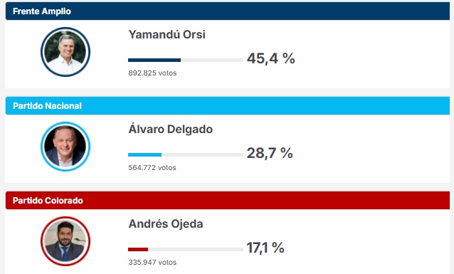 De esta manera, de cara al balotaje que deberá enfrentar contra el candidato nacionalista, Álvaro Delgado, el próximo 24 de noviembre, indicó: “En estos 27 días vamos por ese último esfuerzo, con más ganas que nunca, más de pie que nunca”.
