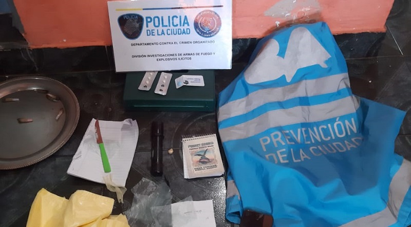 En consecuencia, los efectivos incautaron 15 dosis de cocaína (2,1 gramos), un papel con cocaína (3,1 gramos), una dosis de marihuana (0,8 gramos), una piedra de pasta base (1,7 gramos), siete cigarrillos armados de marihuana (4,1 gramos), una balanza de precisión, una receta médica en blanco con el sello de un médico, una caja de plástico de una arma, una picana eléctrica, una agenda con anotaciones, un cuchillo de cocina con restos de cocaína, dos bolsas de bicarbonato y bolistas de nylon para administrar la droga.