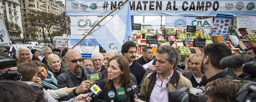 La candidata a gobernadora bonaerense María Eugenia Vidal participó este miércoles por la mañana, en el Obelisco porteño, de la protesta realizada por productores agropecuarios y reiteró que “en la Argentina que viene el campo es el puente del crecimiento y la Provincia de Buenos Aires es la mitad de ese puente”.